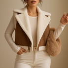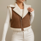 De JUNE Teddy Bodywarmer geeft direct warmte en stijl aan elke outfit. De dikke teddy stof voelt heerlijk zacht aan en houdt je comfortabel tijdens koude dagen. De openvallende kraag en zilverkleurige ritssluiting zorgen voor een moderne, modieuze uitstraling – ideaal te combineren met jeans of een wide-leg broek voor een effortless chic look.