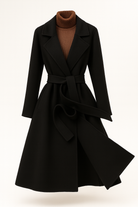 Deze Overjas is volledig handgemaakt van 100% wol, waardoor hij warm, duurzaam en zeer comfortabel draagt. De medium-dikke wol voelt zacht aan en behoudt goed zijn vorm. De jas heeft een slanke pasvorm, een pakkraag en een striksluiting, waardoor het silhouet netjes en vrouwelijk blijft.