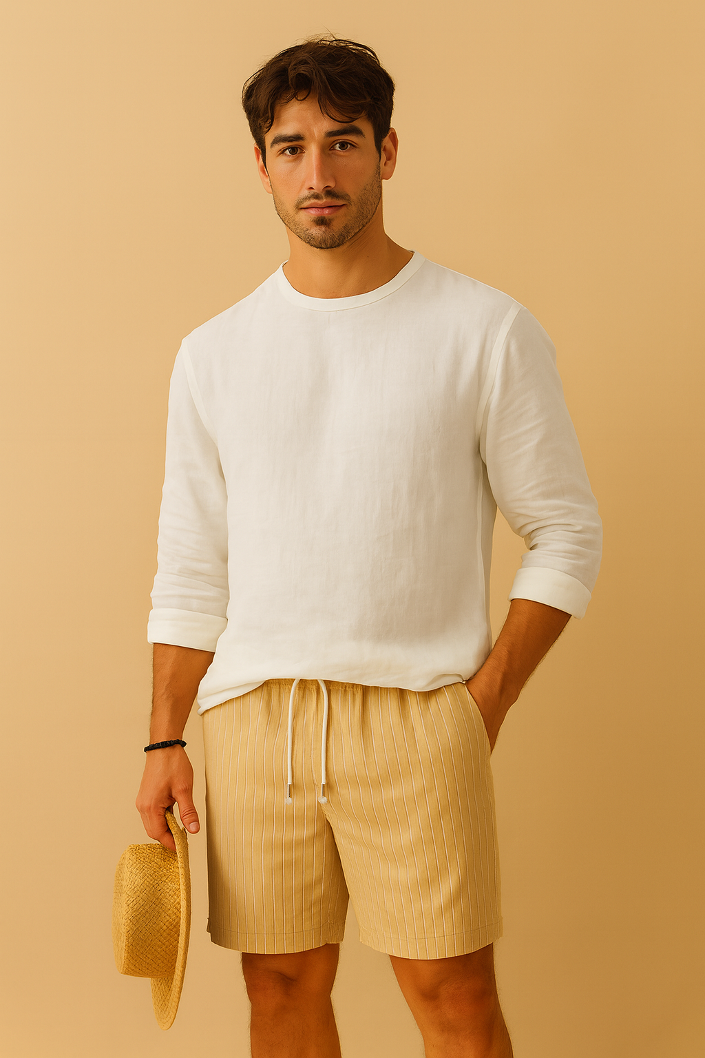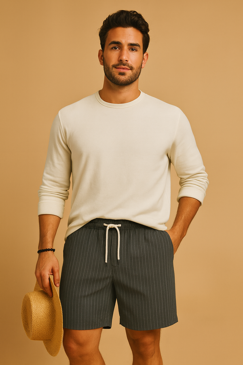 Voeg moeiteloze stijl toe aan je zomergarderobe met de Pinstripe Breeze Shorts van FRESH LABEL AMSTERDAM. Deze verfijnde shorts combineren comfort met een tijdloze pinstripe-print, waardoor ze zowel casual als stijlvol ogen. Perfect voor een relaxte dag in de stad, een strandwandeling of een zomerborrel.