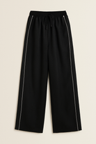 Deze losse, luchtige broek combineert ultiem draagcomfort met een minimalistisch design. De elastische tailleband met trekkoord zorgt voor een flexibele en comfortabele pasvorm, terwijl de rechte pijpen een tijdloze uitstraling geven. Dankzij het lichte en soepele materiaal draag je deze broek met gemak, of je nu onderweg bent of thuis ontspant.