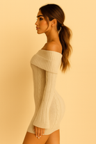 Elegant, stijlvol en cozy – deze off-shoulder sweater dress is dé must-have voor de koude maanden. De ribgebreide textuur en het one-shoulder design geven een moderne, chique uitstraling, terwijl de zachte stof je heerlijk warm houdt. Perfect om casual te dragen met sneakers of stijlvol met hakken en statement sieraden.