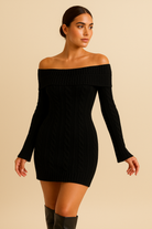 Deze off-shoulder sweater dress combineert comfort met elegante flair. Het aansluitende silhouet flatteert je figuur, terwijl de soepele ribstof zorgt voor draagcomfort en warmte. Dankzij het veelzijdige ontwerp kun je de jurk moeiteloos stylen van dag tot avond – een echte essential in jouw wintergarderobe.