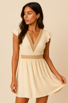 Deze mouwloze zomerjurk combineert een zachte, lichtgewicht stof met prachtige contrasterende kantdetails langs de V-hals en taille. De soepele plooien vallen sierlijk om je heen en creëren een tijdloos, vrouwelijk silhouet. Dankzij de luchtige stof en comfortabele fit blijf je de hele dag stijlvol én relaxed.