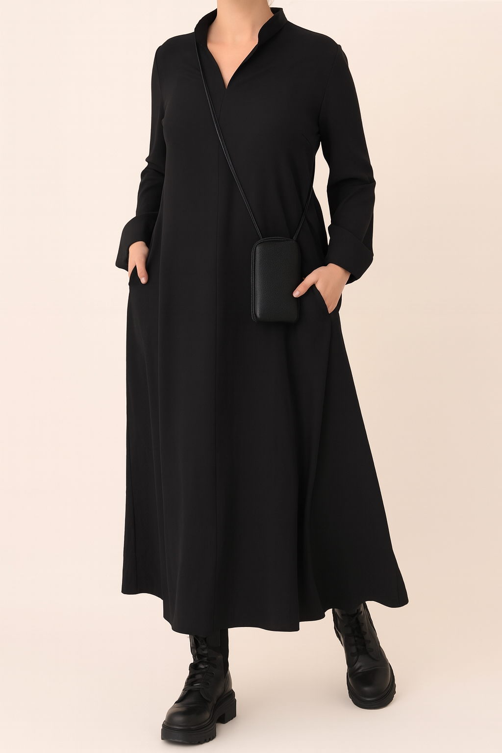 FRESH LABEL | Noelle – Zwarte Midi Jurk