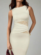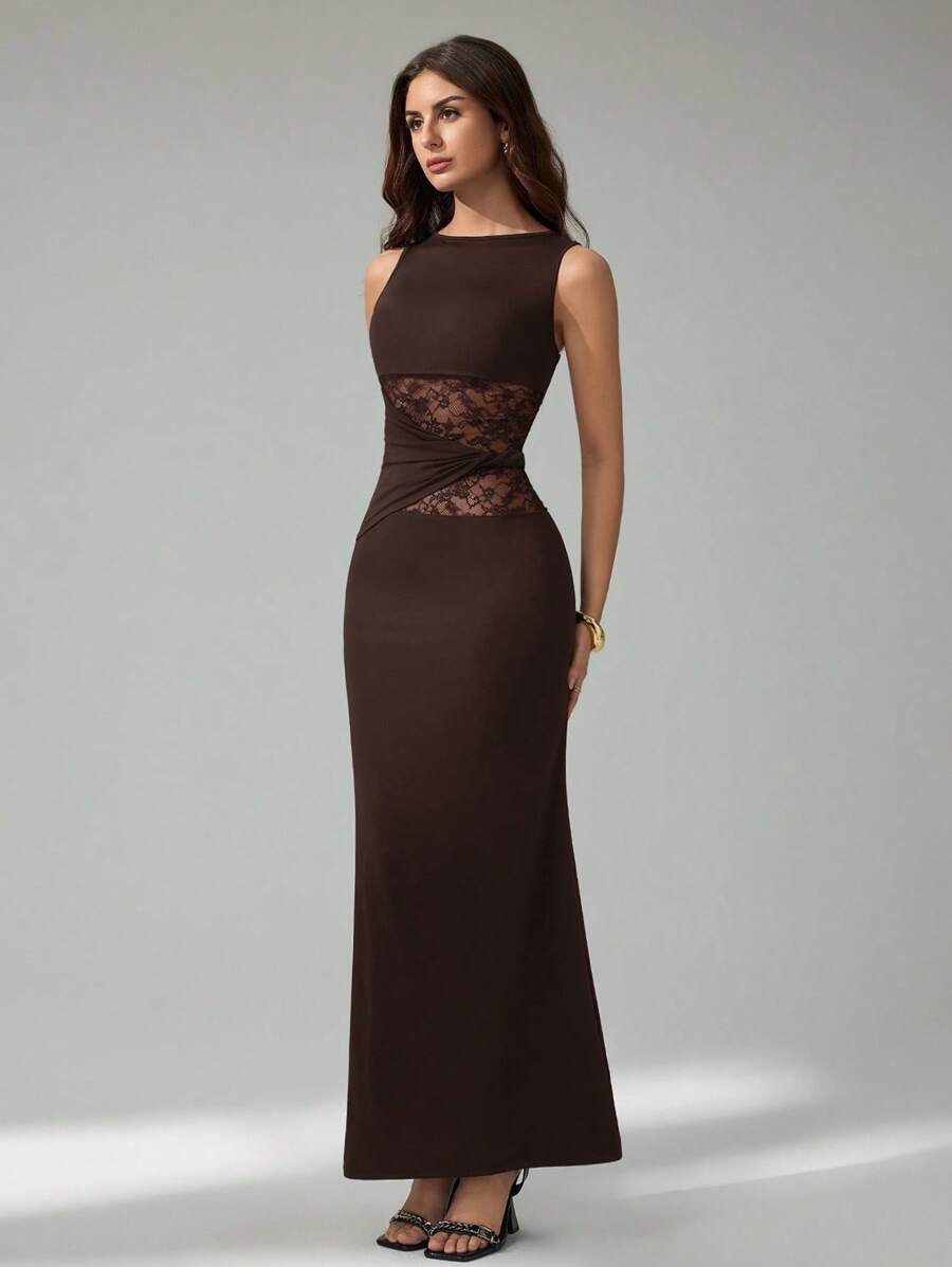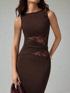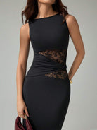 De Liva Maxi Jurk is ontworpen om het figuur op een elegante manier te accentueren. De ronde hals en strakke top creëren een verfijnde, tijdloze look, terwijl het contrasterende kanten paneel in de taille zorgt voor een subtiel sensueel effect. De aansluitende potloodsnit verlengt het silhouet en laat de jurk sierlijk langs het lichaam vallen. De comfortabele, medium-stretch stof zorgt ervoor dat de jurk mooi aansluit zonder in te leveren op draagcomfort. Ideaal voor avonden waarop je stijlvol en zelfverzekerd wilt verschijnen.