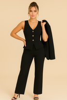 Mooi in eenvoud, flatterend in pasvorm – deze zwarte high waist set tilt jouw look moeiteloos naar een hoger niveau. Perfect voor zowel een casual dagje uit als een avondje stijlvol op pad.
